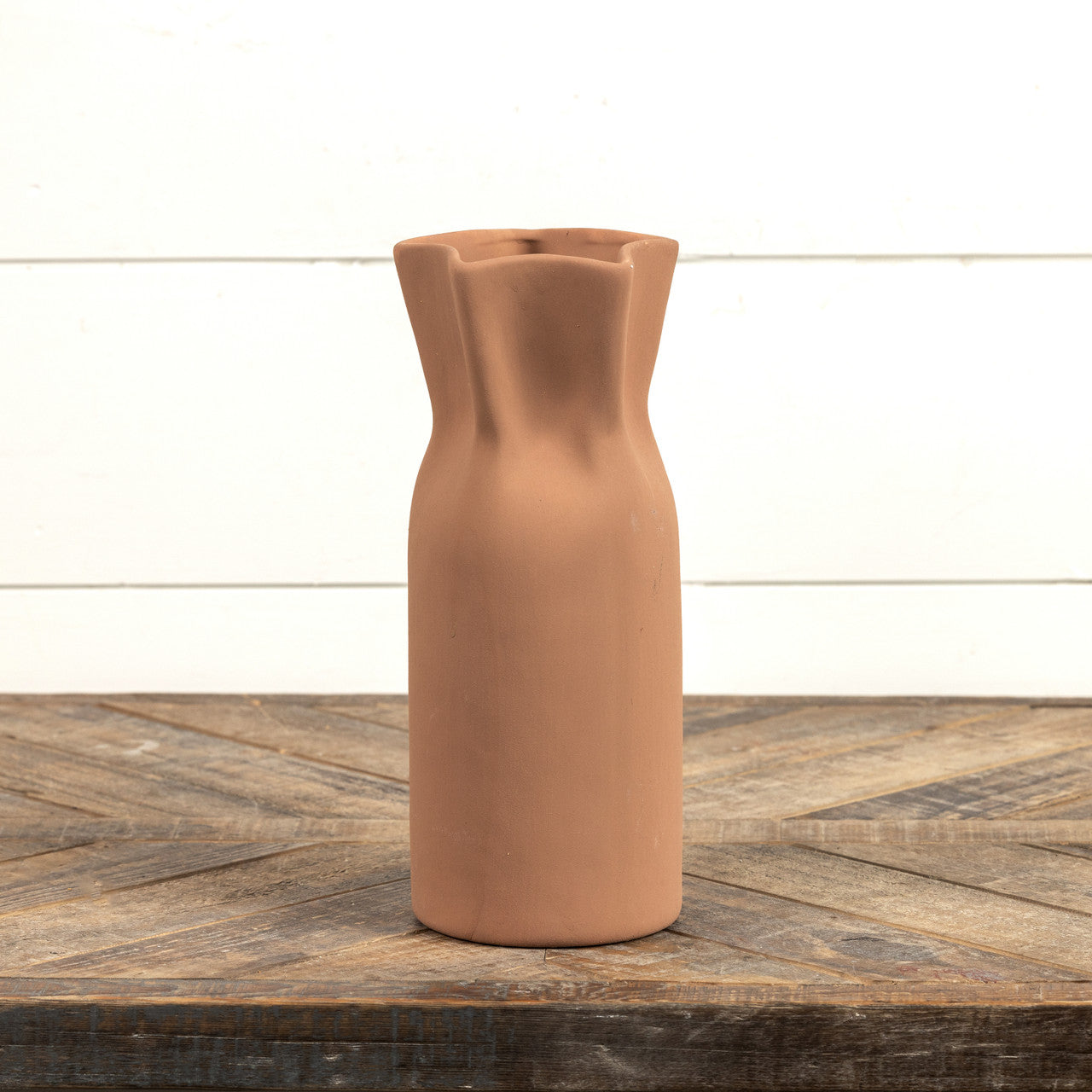 Sleek yet full of character, this 12" Brown Pinched Vase brings artisan texture and sculptural shape to your space. Its deep earthy tone and subtly pinched design add visual interest without overpowering, making it the ideal vessel for dried stems, a single bold branch, or to stand alone as a minimalist statement.